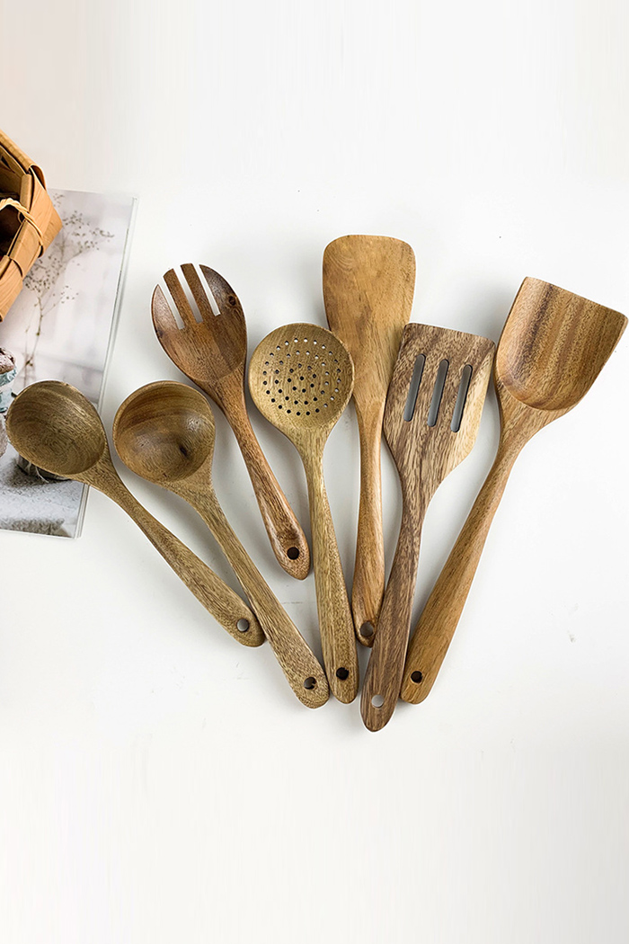 Colador De Cuchara De Sopa De Madera Maciza De Mango Largo De Teca